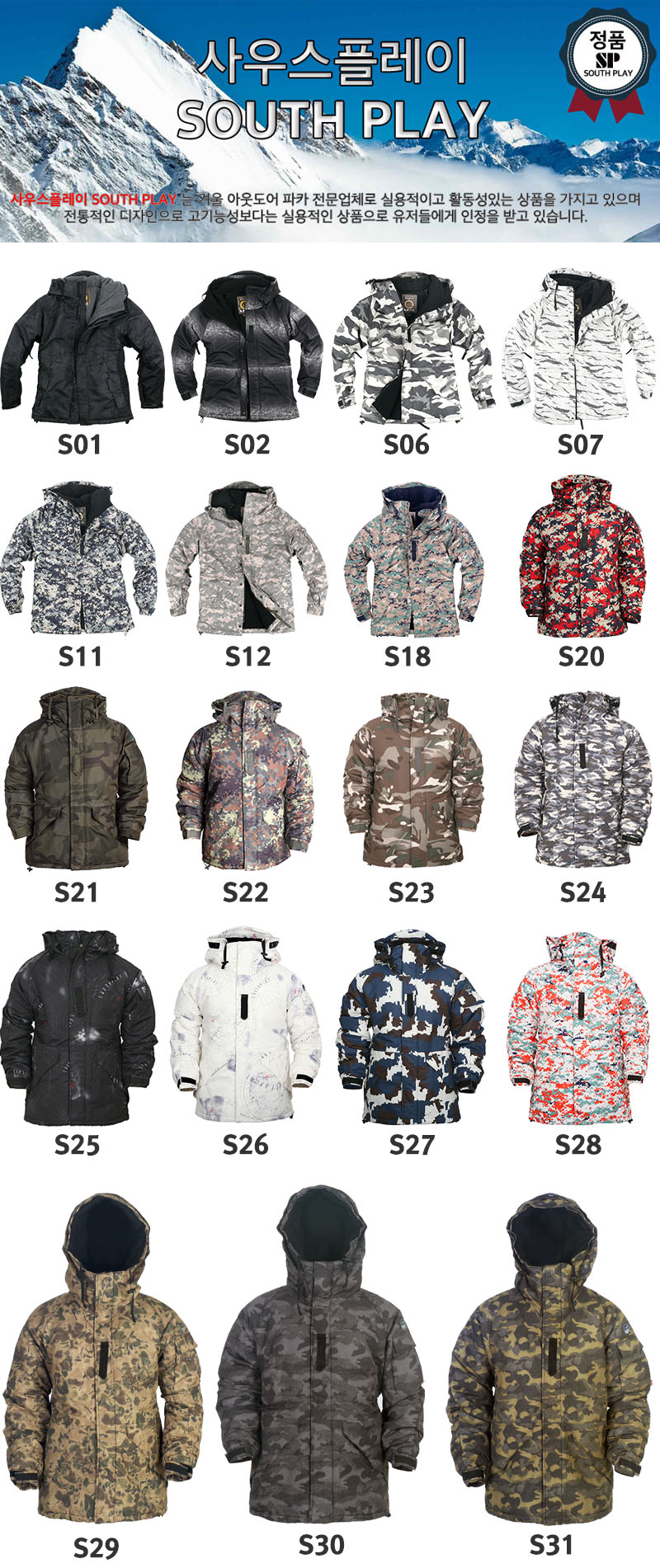 • S25 사우스플레이 나염 바람막이 야상/(KD320)/보드복/군인/자켓/단체/인쇄/나염/전사/후로피/칼라/자수/겨울/과잠/바막/검정